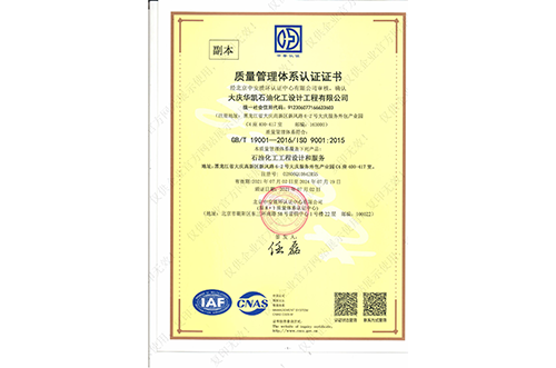 我公司具有化工工程專業(yè)甲級,石油及化工產(chǎn)品儲運、煉油工程、管道輸送、油田地面、制漿造紙工藝、城鎮(zhèn)燃氣工程、建筑工程乙級設(shè)計資質(zhì),石化、建筑乙級咨詢資質(zhì),并通過了ISO9001質(zhì)量管理體系的認證、環(huán)境管理體系認證和職業(yè)健康安全管理體系認證,具有Ⅰ、Ⅱ、Ⅲ類壓力容器設(shè)計資格證及壓力管道設(shè)計資格證。
